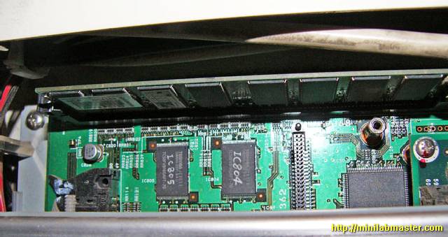 Ok, I said, pulled out of a computer minilab 256 MB module (which there are two), and inserted it into the green board. Turned on minilab - he wound up happily without a single error, the green LEDs on the board flashed rhythmically, and I gleefully ran to the store for the new memory.
