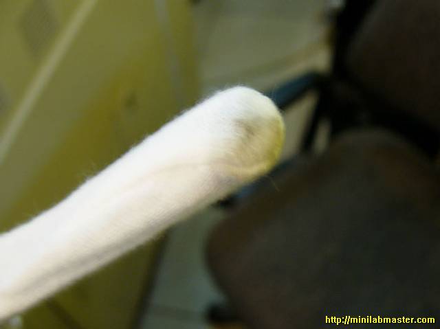 Now we can clean the glass. I personally used a new glove, a finger is inserted a plastic handle and moistened with Lana. No metal parts! Here it is, dirt: