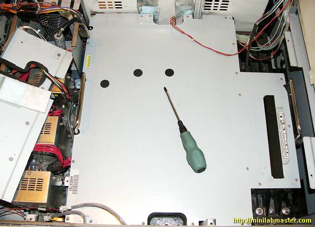 So let's begin. To get started, oddly enough, it is necessary to remove the left side cover. About this is I have a cautionary tale. Cleaning glass laser exposure below, I had to remove the the paper feeding-exposuring unit. But to remove it, as we know, you need to unscrew the four screws that are located close to the laser, and this, in turn, need to fully open the cover under which is hidden laser unit. So, all safely disassembled, cleaned and gathered, with turning on minilab I got a lot of errors - LVDS error, there is a lot of error, and all the bugs swirling around the laser, which, as we know, does not bode well.