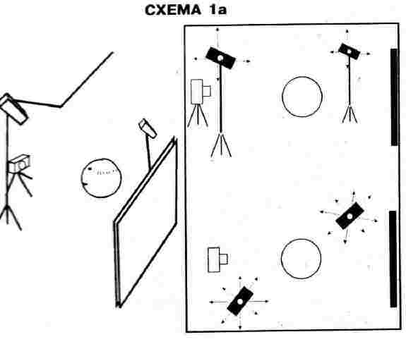 Расположение камеры и фона по отношению к объекту съемки при всех схемах освещения неизменны. На Рис. 1 и Рис. 1а показана простая схема размещения осветительных приборов.