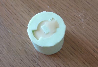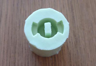 Это мой "первый блин - комом", немного криво залил, но последущие копии получились более аккуратные, просто уже не фотографировал. Но и в данном случае не требовалось очень большой точности, первую копию плаcтиковой детали доработал на точильном круге - выровнял верхнюю (если смотреть по заливке) плоскость.