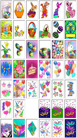 - изображения к празднику (День рождения, день св.Валентина, Новый год, Рождество, Пасха, Хеллоуин)